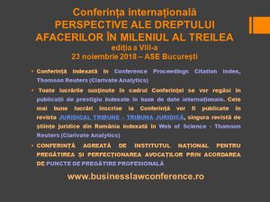ANUNT privind desfasurarea celei de a VIII-a editii a Conferintei internationale „PERSPECTIVE ALE DREPTULUI AFACERILOR ÎN MILENIUL AL TREILEA” – organizata in data de 23 noiembrie 2018